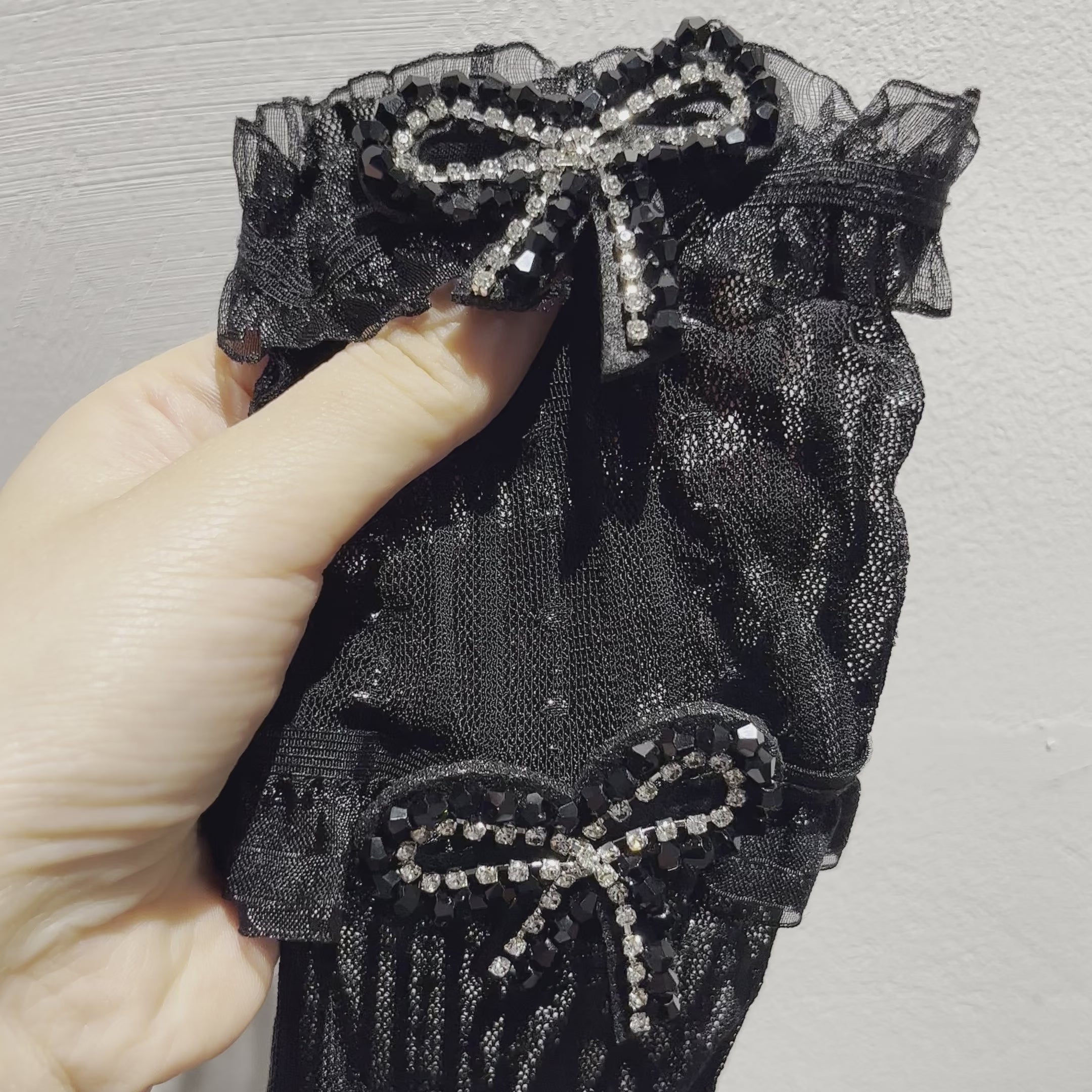 - Material:socks(84% polyamide,12% polyester,4% elastane), bowknot (zircon)