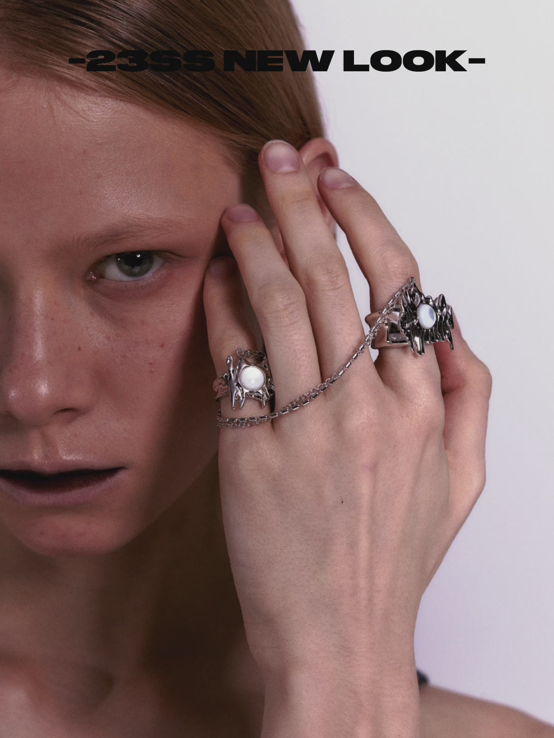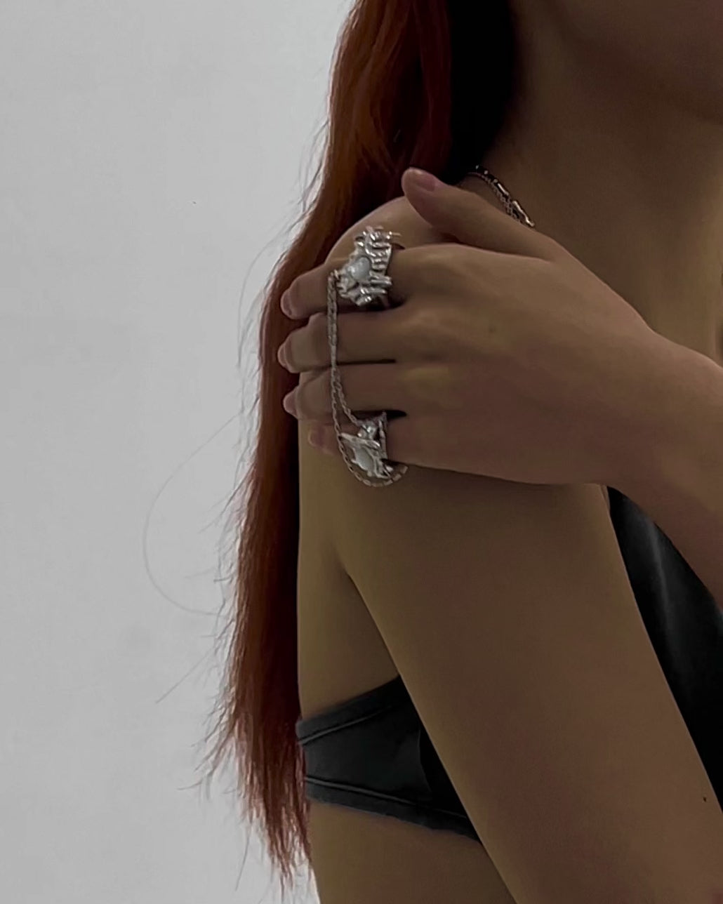 Mother of Pearl Natural Shell Liquid Metal Chain Rings